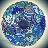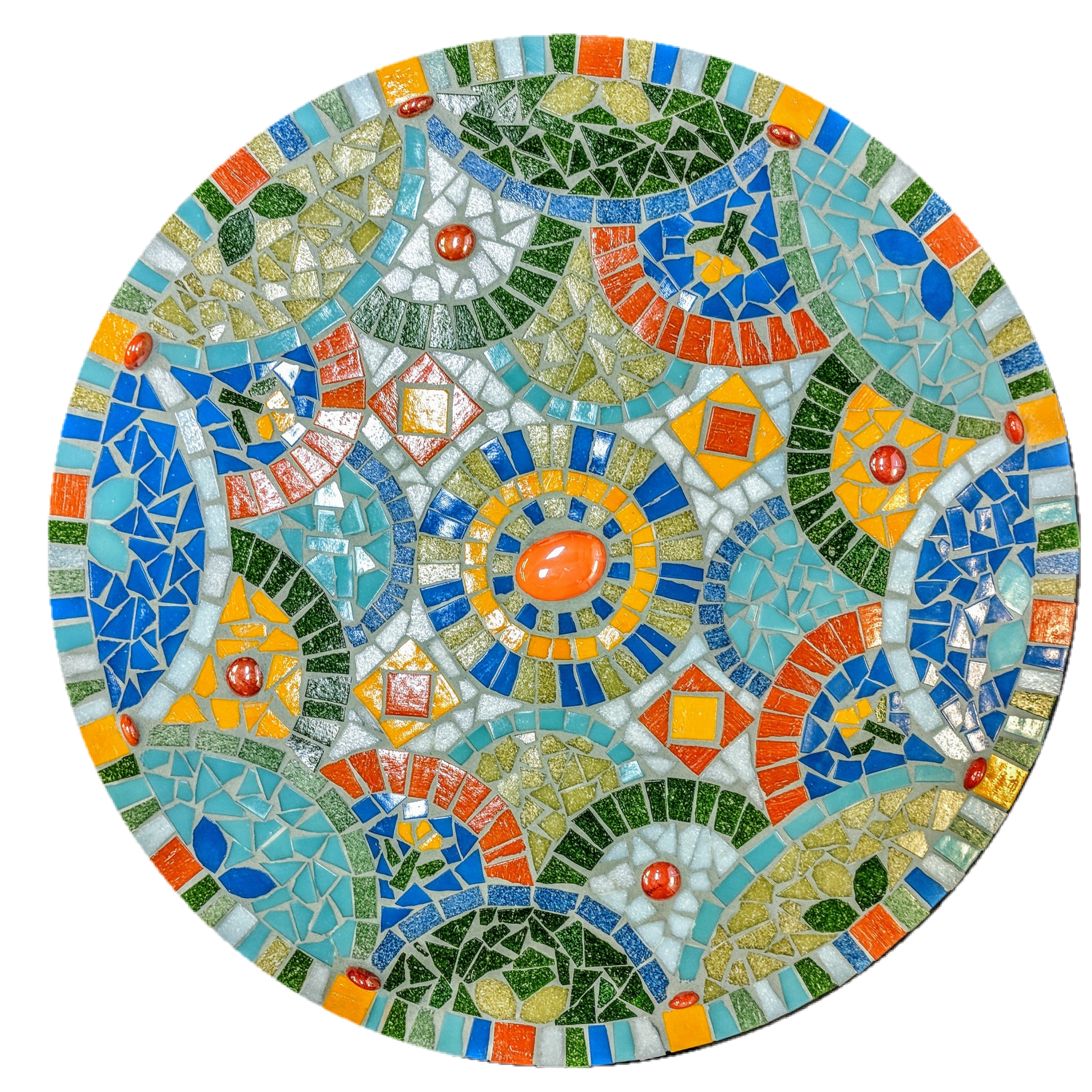 Regal kitty with Hand cut art glass and glass tiles. Silver beaded collar with millefiore eye and wire whiskers. Mounted on wooden base for secure display.